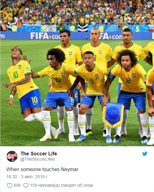 Ранее бывший нападающий сборной Бразилии Роналдо, отвечая на вопрос о симуляциях Неймара, рассказал, что это может быть реакцией на удары, чтобы нарушитель не зашел дальше. Шутки о симуляциях Неймара во время ЧМ по футболу захватили социальные сети и породили множество мемов.