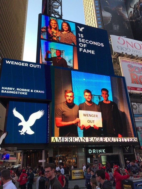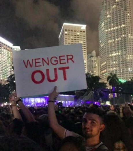 Саму акцию начали английские болельщики "Арсенала", недовольные плохим выступлением команды. Они неоднократно устраивали протесты против Венгера, а однажды даже арендовали самолет для призыва к тренеру. После этого к акции присоединились фанаты клуба со всего мира. Они не ограничиваются спортивными мероприятиями, демонстрируя призыв к главному тренеру на забастовках и концертах.