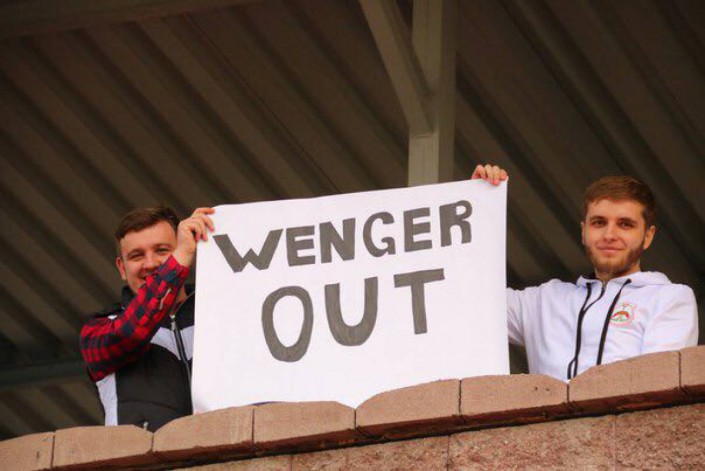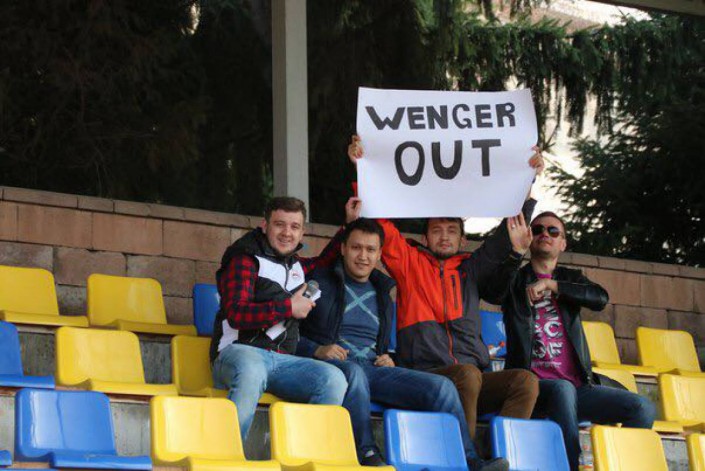 Плакат с надписью Wenger Out появился на матче второй лиги чемпионата Казахстана между "Рузаевкой" и молодежной командой "Тараза" (1:0). Игра прошла сегодня, 14 апреля, на алматинском стадионе ЦСКА, на котором свои домашние встречи планирует проводить "Рузаевка" из одноименного села в Северо-Казахстанской области.