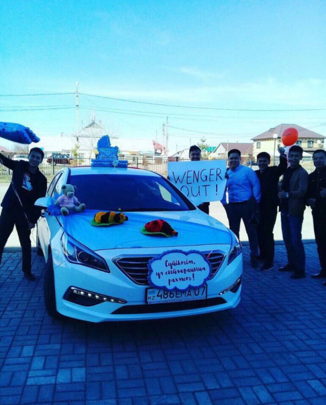 Это уже не первое появление плаката с надписью Wenger Out в Казахстане. Ранее его продемонстрировали на одной из свадеб.