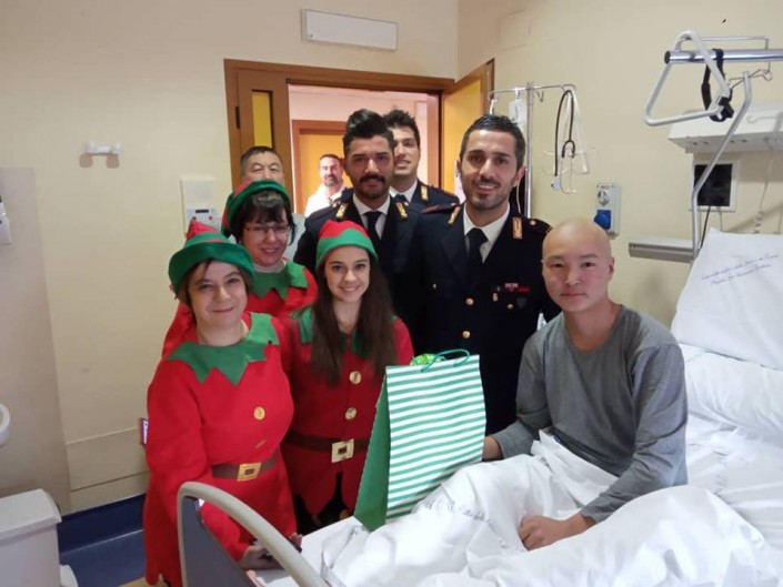 В той же больнице Турина лечится юноша из Кыргызстана по имени Нурпазыл. Его навестили туринские полицейские и вручили подарки.