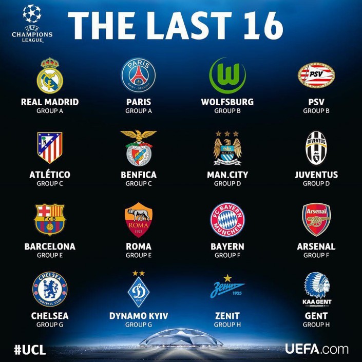 Таким образом, в плей-офф Лиги чемпионов вышли 16 команд - "Реал", ПСЖ, "Вольфсбург", ПСВ, "Атлетико", "Бенфика", "Манчестер Сити", "Ювентус", "Барселона", "Рома", "Бавария", "Арсенал", "Челси", киевское "Динамо", "Зенит" и "Гент".