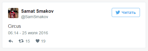 С чем официально связан возможный уход Смакова из "Актобе" в середине сезона не озвучивается, однако есть смысл напомнить последнюю публикацию игрока в твиттере. Он написал лишь одно слово - Сircus ("Цирк").