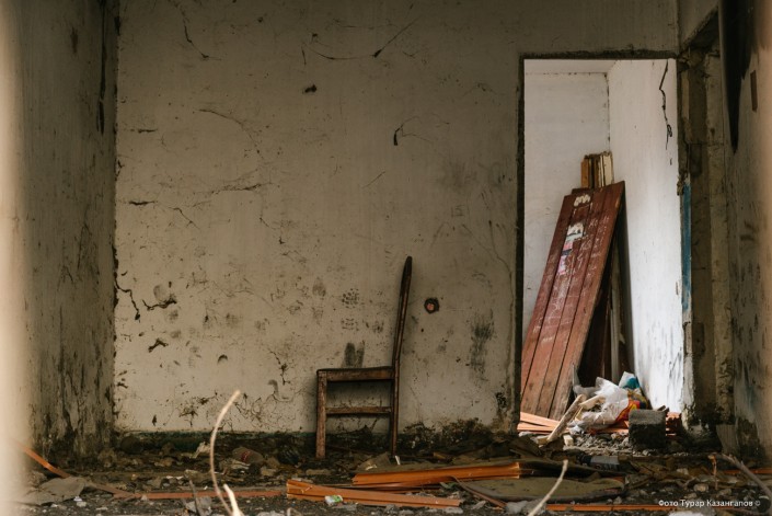 Этот стул мы нашли в тихом коридоре местной начальной школы. Она закрылась более семи лет назад. Учить оказалось некого. Осталось всего несколько детей. Их решено было отправить в интернат в соседний поселок.