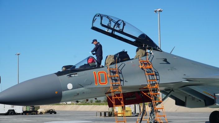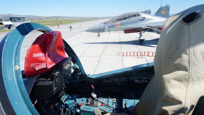 Во время учебно-тренировочных полетов пилоты набирают высоту до девяти тысяч метров. Су-30СМ поднимается на высоту 12 тысяч метров.