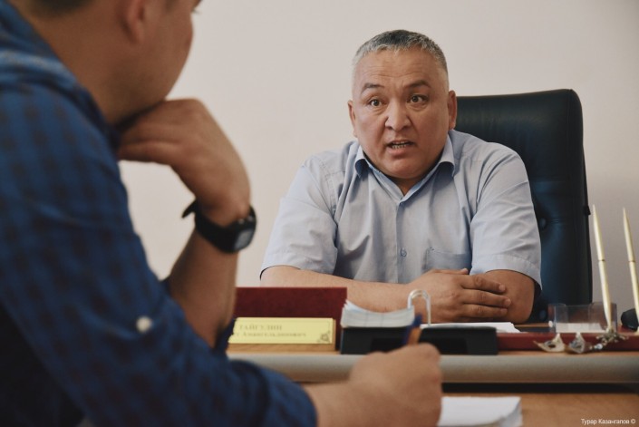 Даулет Амангельдиевич на служебном автомобиле объезжает поселок и заодно показывает нам, как устроен этот населенный пункт. "Водитель приболел. Но население любит, когда я езжу. Пока водителя нет, я в 6 утра встаю, приезжаю на работу, местные жители как раз коров отводят, интересно же: поздоровался, постоял, поговорил с ними", - отмечает аким.
