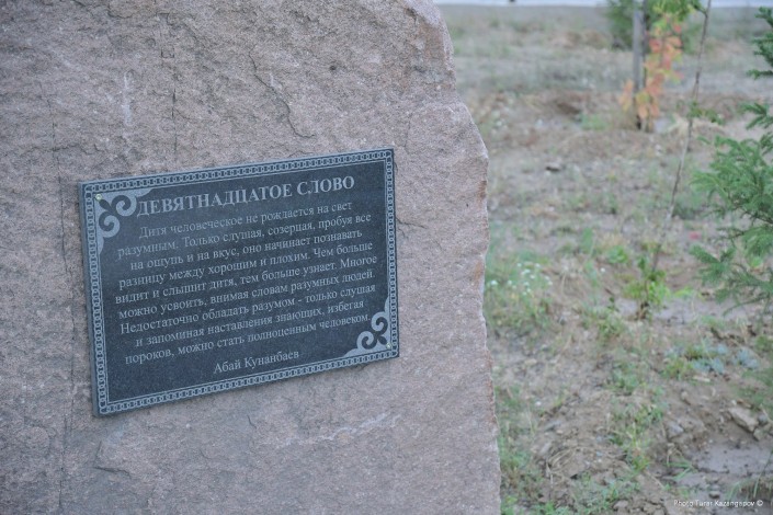 На камне рядом с памятником мы увидели табличку с мыслями Абая о том, как стать полноценным человеком.