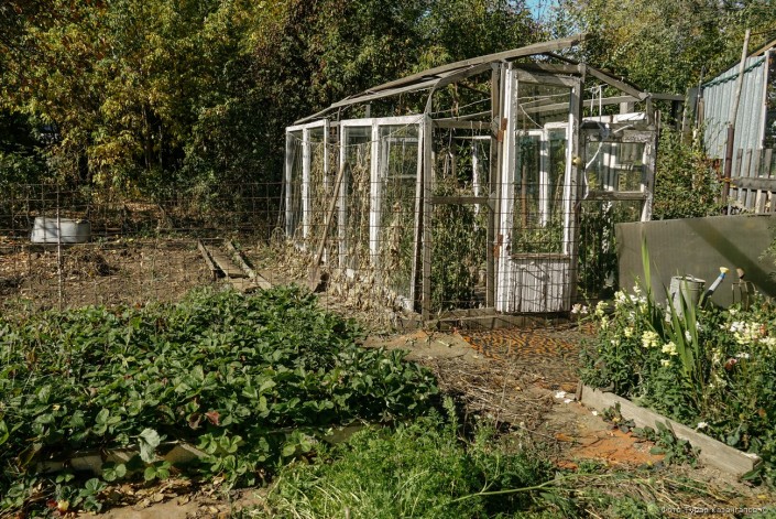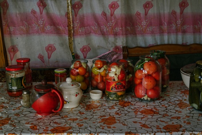 Во дворе очень уютно, супруга в летней кухне готовит обед и параллельно делает заготовки на зиму.