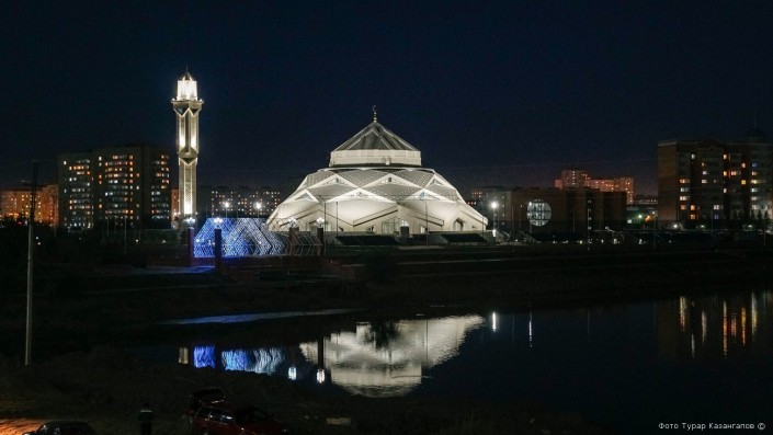 Выход из поселка можно найти лишь по подсветке минарета футуристической мечети.