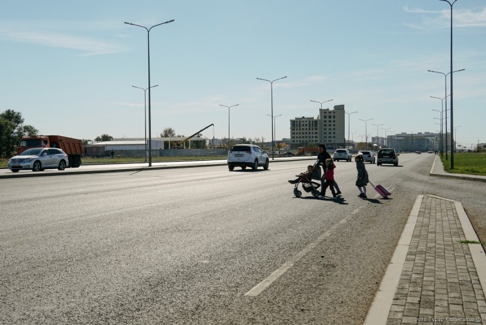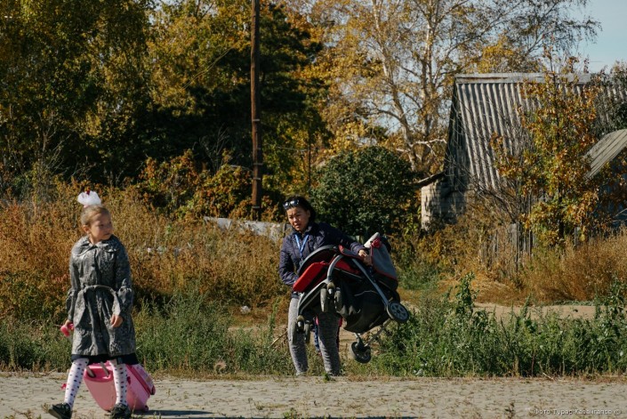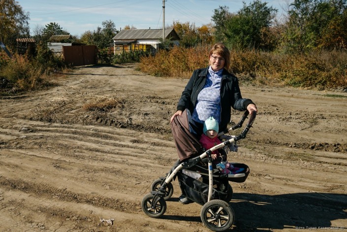 Ей приходится гулять с ребенком вдоль пыльной трассы по бездорожью. Но сейчас, говорит она, еще хорошо, трудности начнутся после дождя, когда дорога станет непролазной.