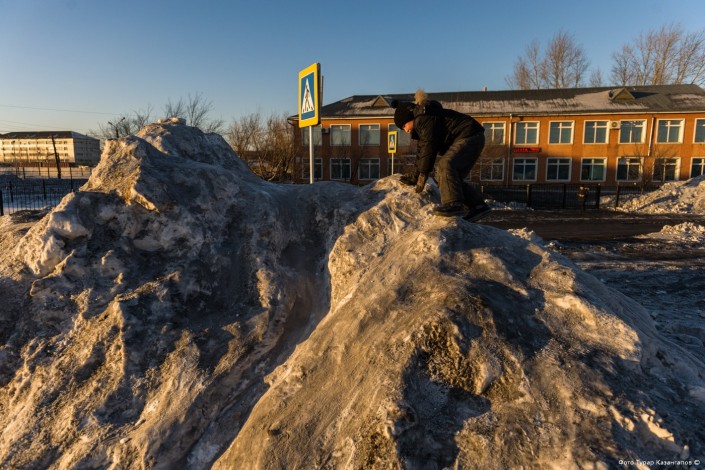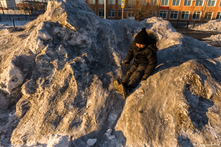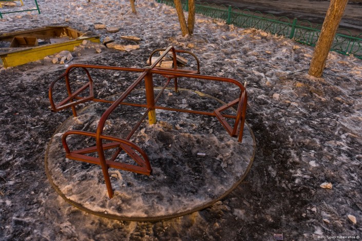 Район ТЭЦ-1. Сами жители называют это место "Лесозаводом". Во дворе общежития ВРЗ (вагоноремонтного завода) находится детская площадка. Снег на ней сплошь усыпан не то сажей, не то гарью.