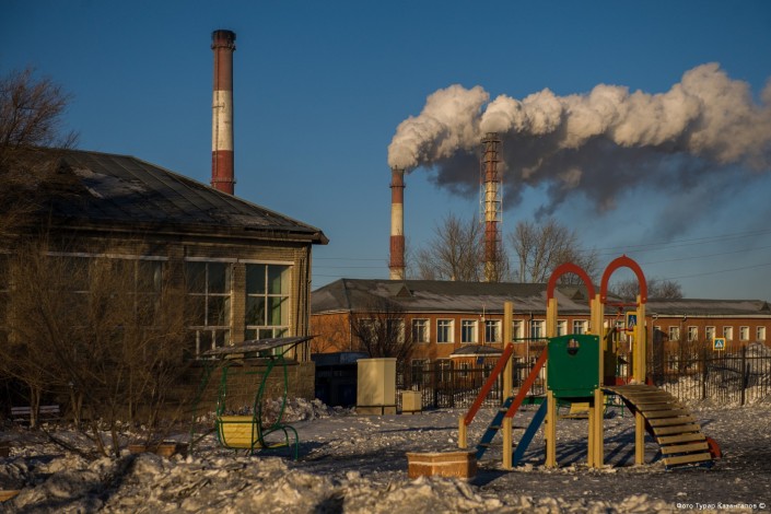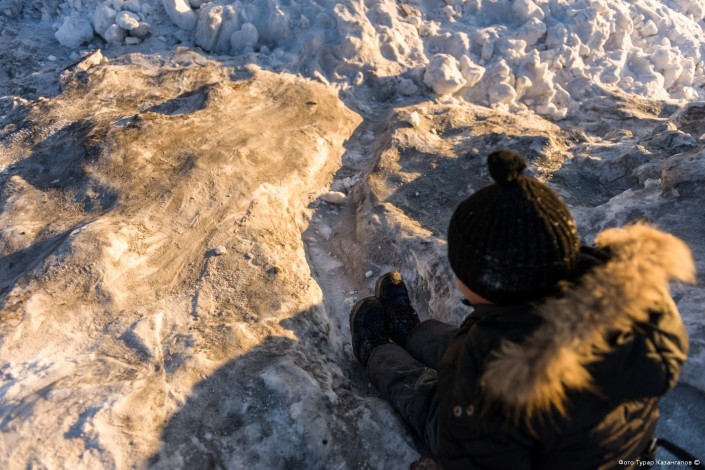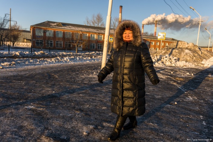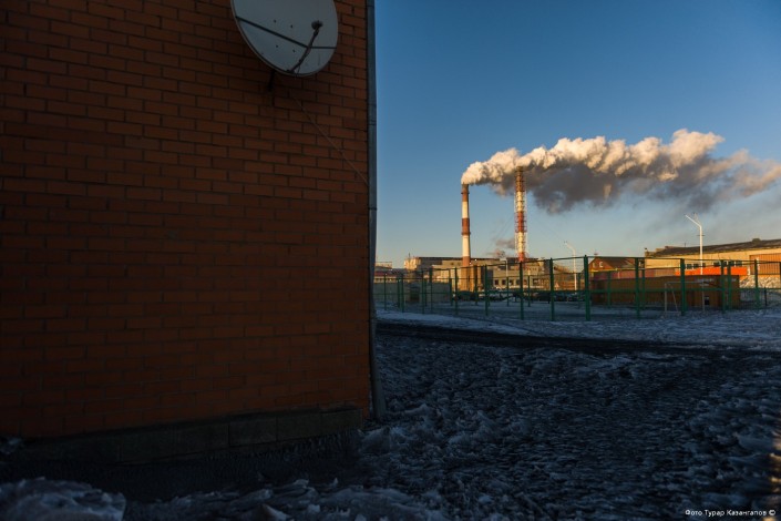 "У нас всегда черный снег, потому что ТЭЦ рядом. А белый снег сейчас откуда возьмешь? Сейчас белый только в ауле найдешь. А так у нас здесь невозможно жить, запах дыма. Как утром выйдешь, так и глотаем этот дым, дышим им", - говорит женщина на фото сверху. Живет в этом районе она уже пятый год.