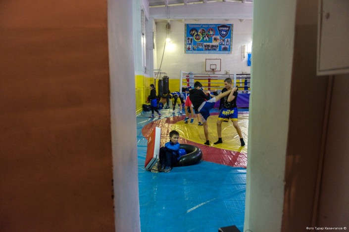 Неподалеку отсюда, в спортивном зале общежития, двор которого усыпан пылью, вовсю идут тренировки.