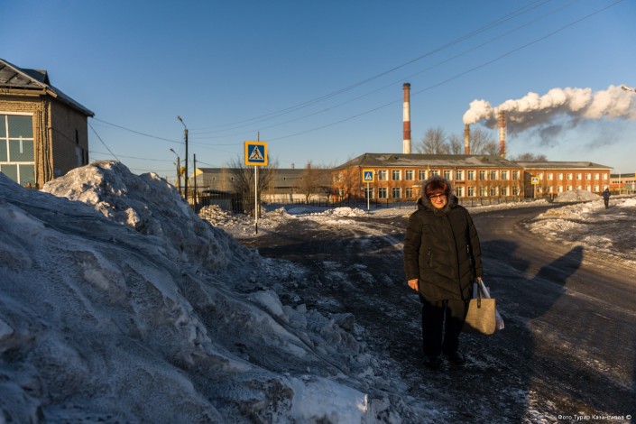 "Вот нас бы снесли и было бы хорошо, а так дышать нечем, копоть одна, видите, какой черный снег. Вот этот снег черный, думаете, от чего? От трубы. А если вы немного дальше отойдете к городу, то там уже снег белый. От этих труб все и коптит", - считает женщина.