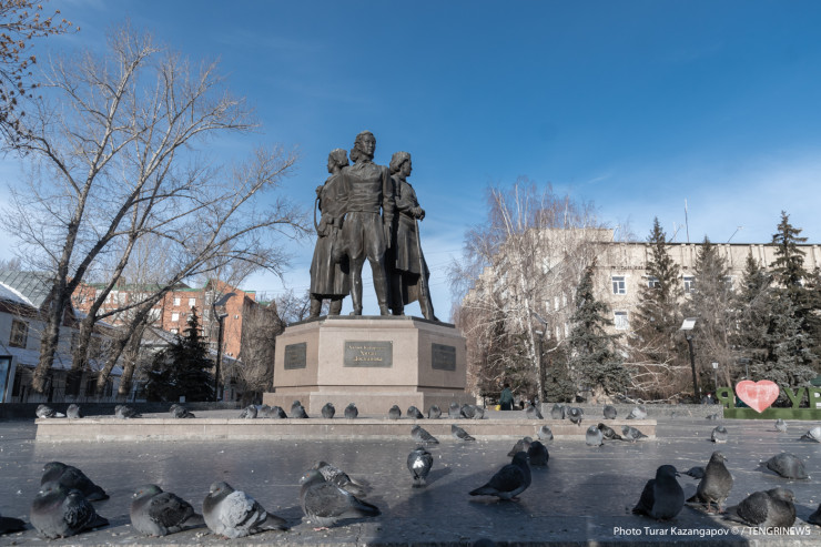 Возле памятника трем казахстанским женщинам-батырам - Алие Молдагуловой, Маншук Маметовой и Хиуаз Доспановой - есть подземный переход.