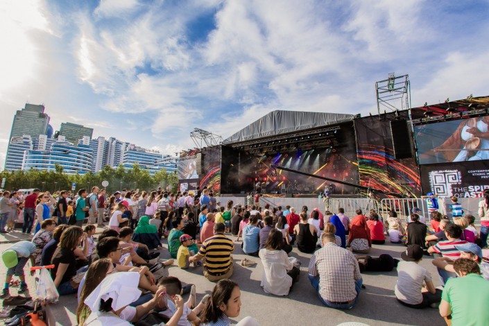 Сцена фестиваля была расположена таким образом, что происходящее на ней можно было увидеть с любой точки площади.
