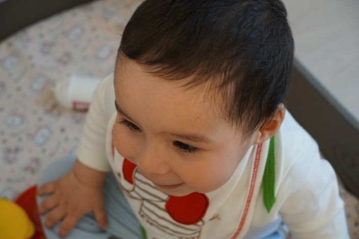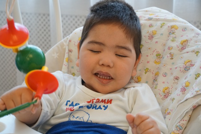 А этого малыша зовут Бахыт, или просто Баха. Ему два годика. Из-за проблем со зрительными нервами он плохо видит.