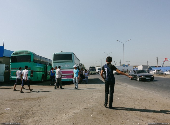 Из беседы с продавцами рынка мы поняли, что большинство из них приехали работать в Астану из Южно-Казахстанской области. Возможно, поэтому большая часть автобусов здесь с госномерами 13-го региона.