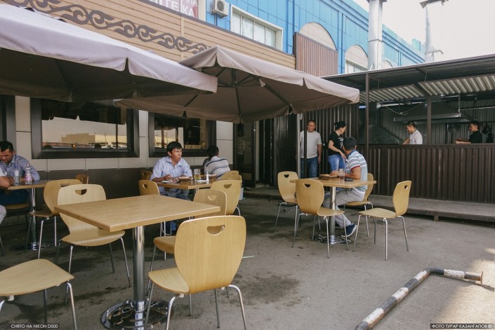 Как рассказала нам владелица кафе, изначально они открывали фаст-фуд-точку по продаже сэндвичей. Но новомодная еда пришлась не по душе местным обитателям рынка. Поэтому меню срочно поменяли на что-то традиционное и пользующееся спросом - плов и куырдак.