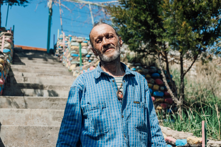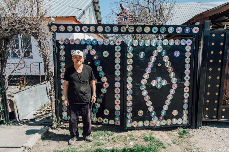 Сюда Самет ата переехал 25 лет назад из Усть-Каменогорска. Его дом выигрышно выделяется на фоне остальных местных домиков. Аксакал коллекционирует диски, а потом украшает ими забор, калитку и все, что придется. Говорит, что любит музыку и красоту. Соседи знают о его увлечении и помогают ему пополнять коллекцию. Так у него скопилось уже более трехсот дисков.