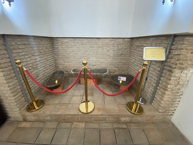 За стенами Отырара есть руины бани, в которой одновременно могли мыться около 100 человек. Здание бани в стиле хамам - здесь много комнат. Она была оснащена сложной системой водоснабжения и водоотведения. У тюрков она была придумана уже в VIII-IX веках. Можно заметить, что после реконструкции этой бани кирпичи тут разные, хоть и одной формы, одни оригинальные, другие более современные.