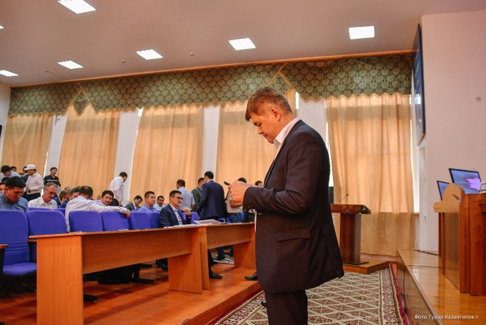 Аскар Мамин наклонился, поднял микрофон и отдал его владельцу.