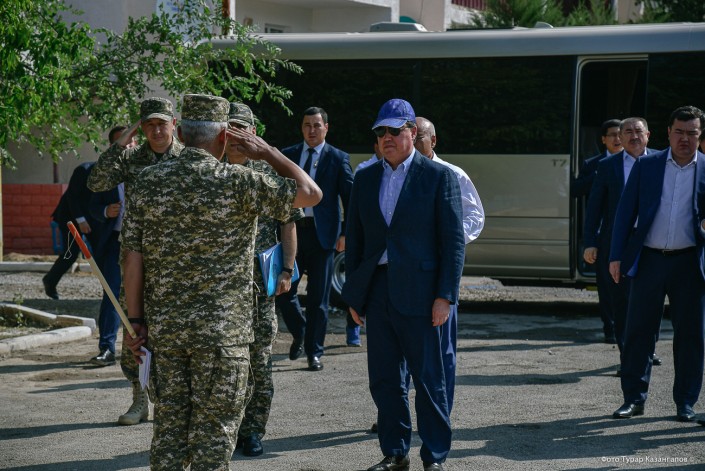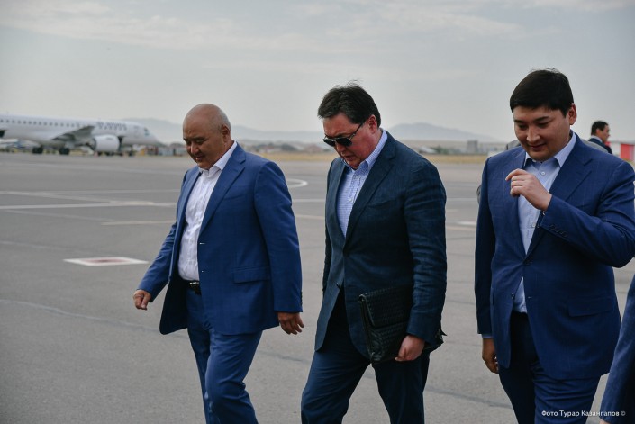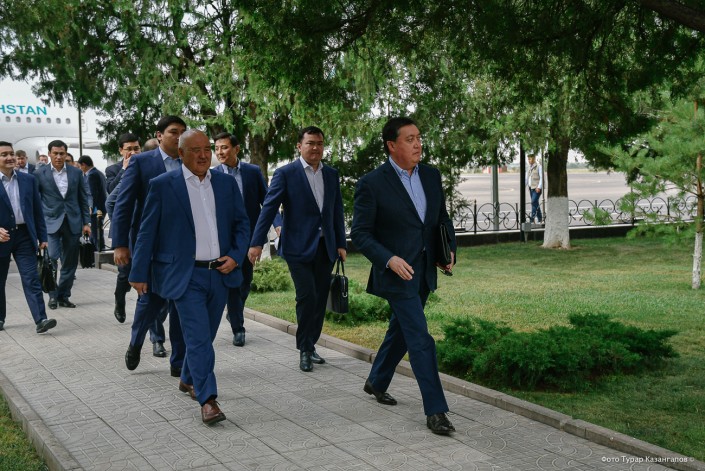 Встречает Аскара Мамина и коллег аким Туркестанской области Умирзак Шукеев.