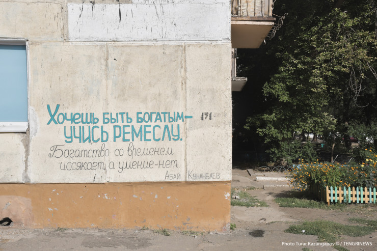 На доме, где живут Аксеновы, кто-то написал слова Абая: "Хочешь быть богатым - учись ремеслу. Богатство со временем иссякает, а умение - нет".