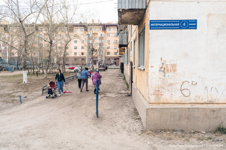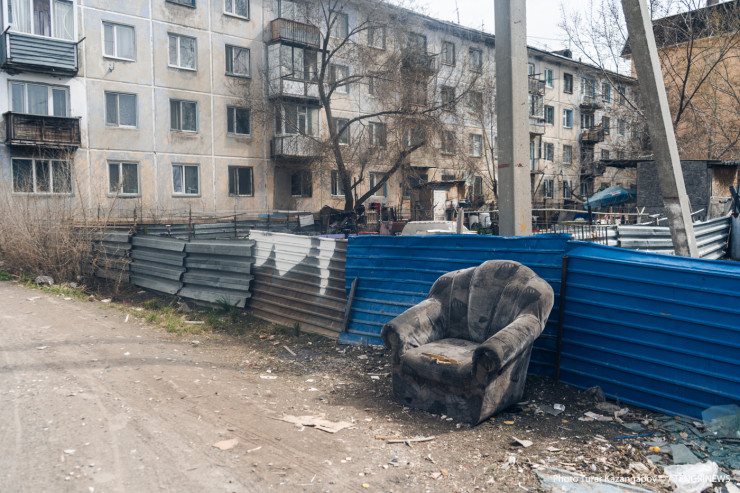 Тот же местный житель обращает наше внимание на новостройки с уложенным во дворе асфальтом и на старые советские четырехэтажки, во дворах которых вместо асфальта просто земля и старые качели.