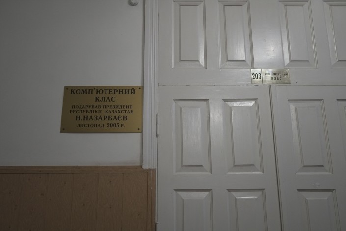 Рядом с именной аудиторией Назарбаева есть еще один кабинет с табличкой, где фигурирует фамилия казахстанского лидера. Там говорится, что этот компьютерный класс в 2005 году подарил училищу Президент Республики Казахстан.