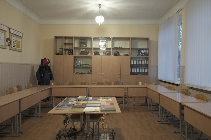 Во времена Назарбаева это был кабинет материаловедения, а сейчас здесь учатся будущие сварщики.