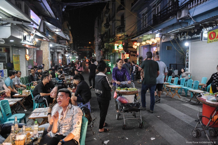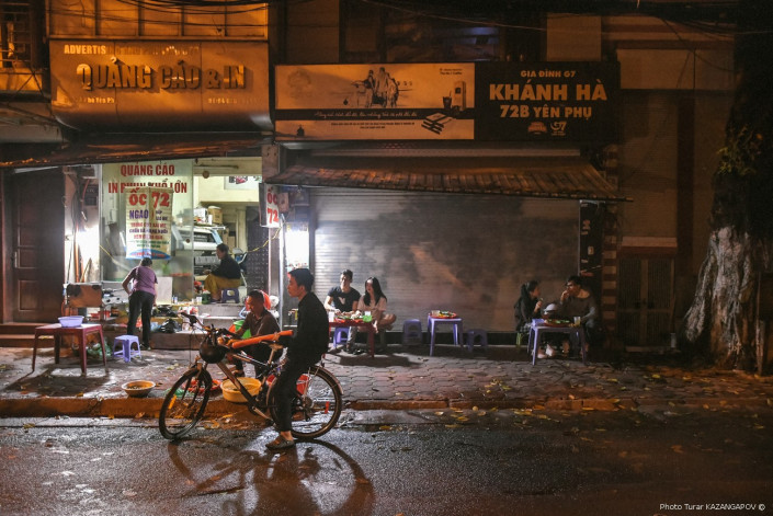 Наш собеседник вряд ли видел вечернюю жизнь Вьетнама, потому что он сказал, что в этот раз у них был достаточно жесткий график и они двигались по программе, так что прогуляться по городу им не пришлось. Но вообще, типичная вечерне-ночная жизнь Ханоя выглядит вот так.