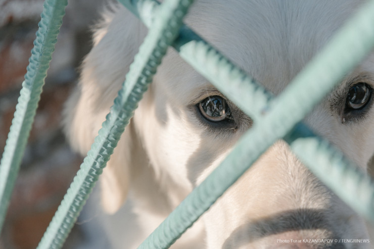 Айк - помесь немецкой и бельгийской овчарки, ему три года. Воспитывает его кинолог Данияр Жусупов.