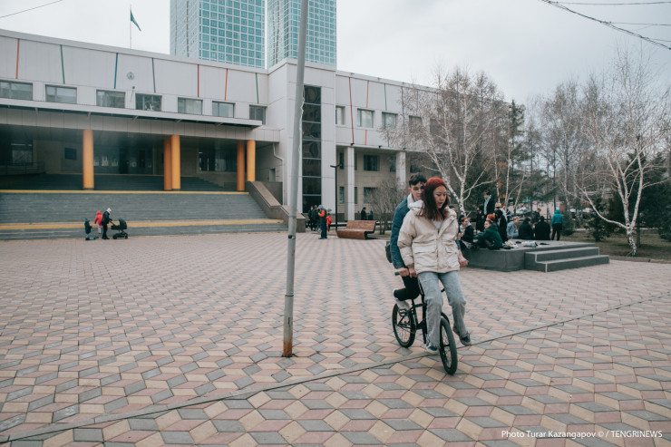 В какой-то момент она превратилась в островок молодежи, и теперь каждый вечер там царит мятежный дух. У подножия памятника Кенесары собирается новое поколение казахстанцев.