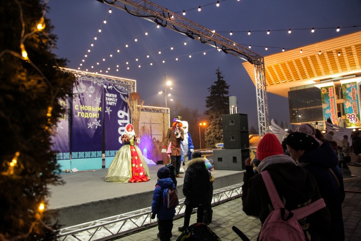 На площади ежедневно проходит winter family party "Путешествие по миру".