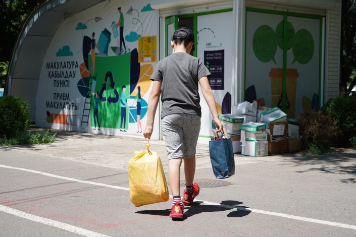 Айбек Рахим – 22-летний эко-активист и создатель приложения Tazalyk. Проект Tazalyk работает с 60 брендами, в основном международными – это компании, головные офисы которых, расположенные зарубежом, диктуют политику раздельного сбора отходов. Tazalyk предлагает установку эко-боксов и бесплатное их обслуживание.