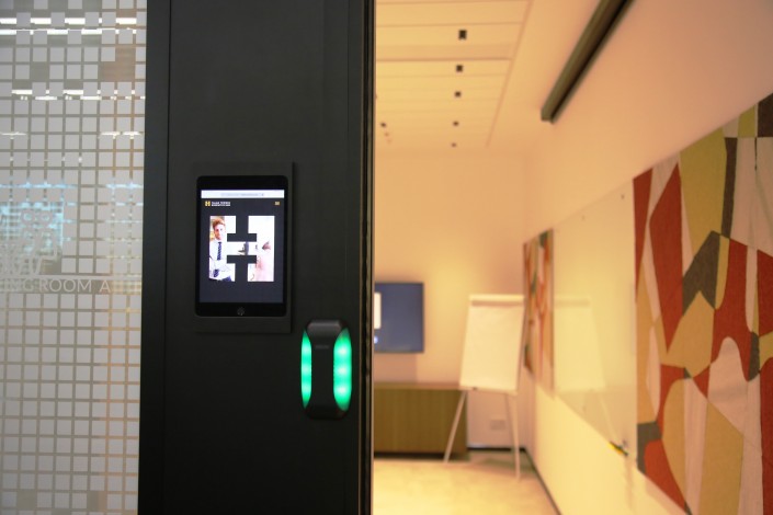 На входе в них установлены специальные планшеты, которые сообщают о расписании проведения встреч.