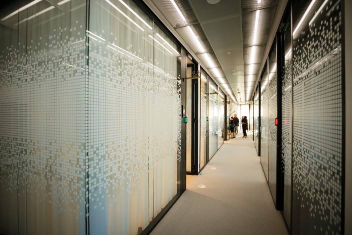 Самое большое офисное помещение рассчитано на семь рабочих мест. Самое маленькое - на одного человека. В каждом помещении есть возможность отдельной регулировки температуры воздуха, установлена система тройной фильтрации воздуха. На одного человека приходится около 60 кубических метров свежего воздуха в час.