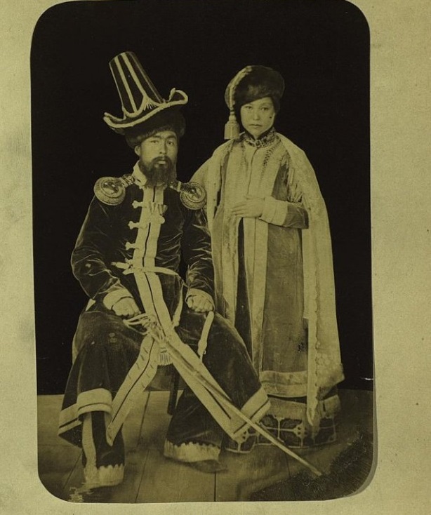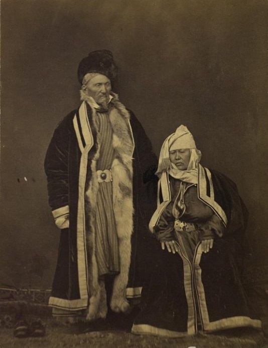 Групповой портрет мужчины и женщины в традиционных костюмах. Семипалатинская обл. 1879 год. Поляков И. С.