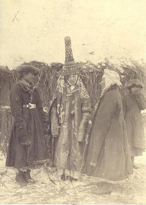 Дудин С. М. Девушка в свадебной верхней одежде и головном уборе саукеле (фас). Казахстан, Семипалатинская обл. 1899 год