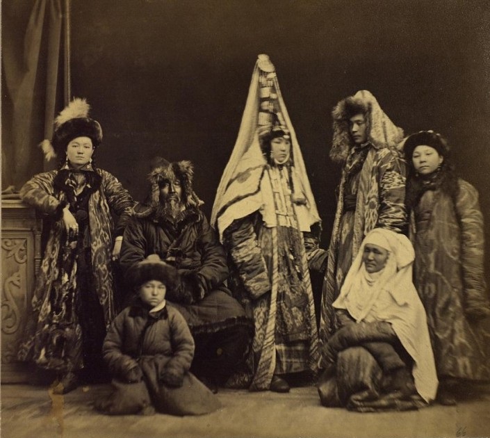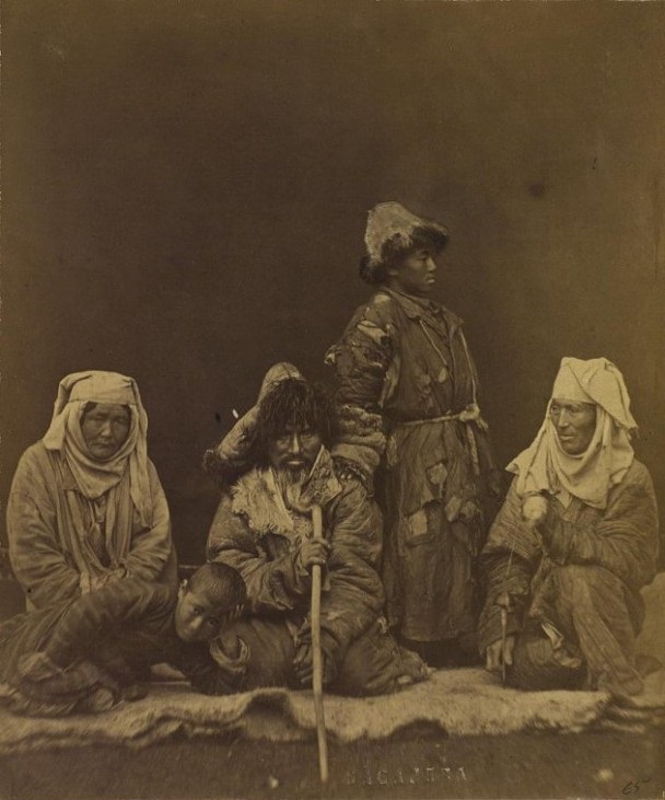 Поляков И. С. Семья в Семипалатинской области в традиционных костюмах. Казахстан, Семипалатинская обл. 1879 год