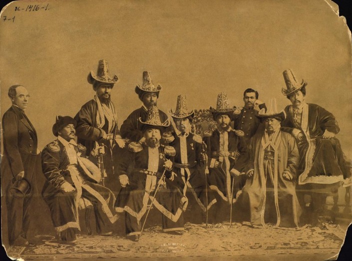 Казахские султаны с представителями русского чиновничества. Санкт-Петербург, вторая половина XIX в. Из коллекции Б. Л. Модзалевского