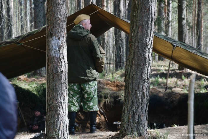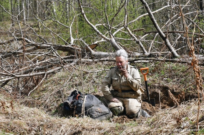Этот звук вместе с лесом, костром, человеческими костями, раскопанными солдатскими ботинками, ржавыми гильзами, гранатами и противогазами, словно машина времени, переносит нас в 40-е годы прошлого века, и мы погружаемся в историю Великой Отечественной войны. Она уже не кажется такой далекой. Вот она, посмотрите.