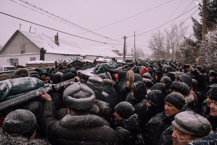 Места в том доме тоже мало. Все заходят и выходят по очереди. В углу дома стоит раскаленная печь. От нее идет сильный жар. Вошедшим приходится чуть ли не вплотную стоять возле этой печки. Чтобы не касаться горячих стенок, люди стараются не двигаться. В другом конце этой маленькой комнаты сидят убитые горем родители. Приходят люди, что-то говорят им. Женщина плачет. Мужчина смотрит в одну точку. На нем нет лица. Вошел имам.