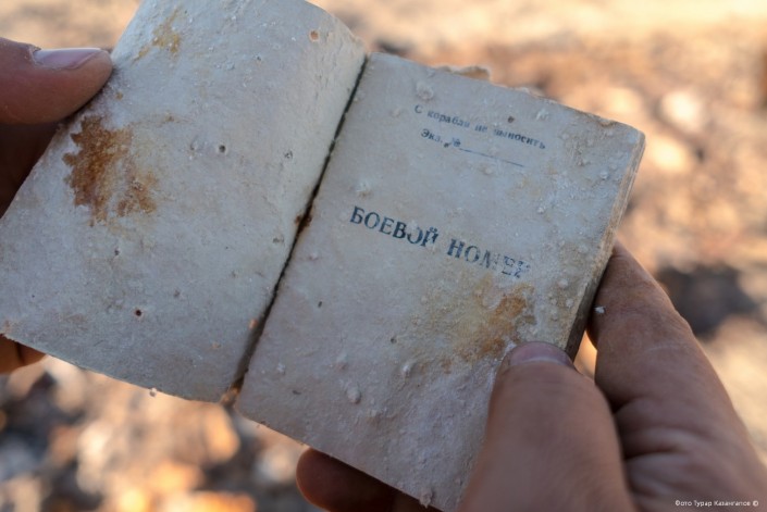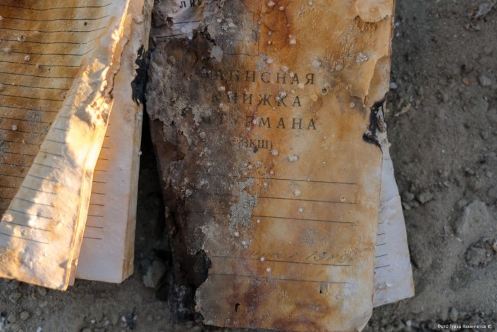 Здесь же, рядом, мы обнаружили в куче сожженного мусора книжки и другие вещи, которые, по всей видимости, кто-то вытащил из этих же кораблей.