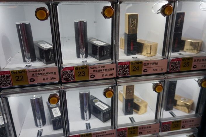 Хотя вот в таких уличных автоматах можно купить себе и помаду, и блеск для губ.
