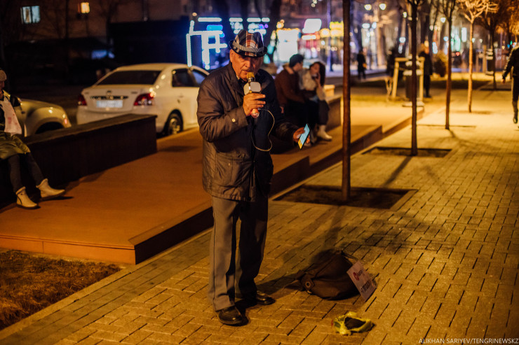 После восьми вечера Панфилова и Арбат постепенно стихают. "Это удивительно, февраль - и такая погода теплая", - шепчет кто-то из прохожих (мы снимали репортаж в тот день, когда холода начали отступать). И только где-то вдалеке мы слышим исполнителя, который поет беспрерывно, да, в это трудно поверить, но пауз он не делает вообще. И любой желающий может к нему присоединиться, для этого музыкант кладет рядом с собой различные инструменты. "Иногда здесь собираются барабаны, флейты, знаете, как все это звучит", - говорит нам алматинка, которая каждый день приходит сюда. Чтобы не сломать ту магию, которую создает автор, мы стараемся не задавать вопросов, а зачем, здесь и без слов все понятно, поэтому мы просто слушаем.