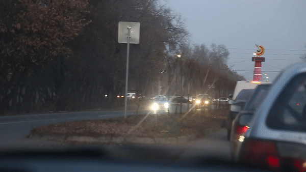 В город мы заедем с Кульджинского тракта, через Аэропортовское кольцо (пересечение с улицей Бухтарминской). Перед кольцом мы встаем в пробку. Однако кто-то продолжает движение - по обочине.