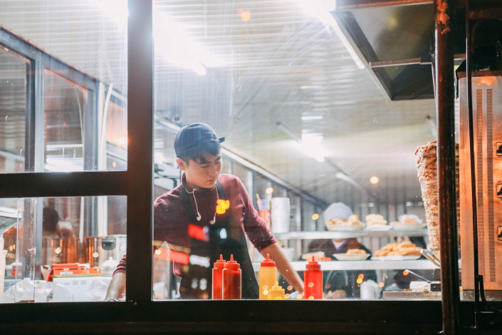 Вокруг кипит жизнь. За углом есть большая столовая, а если нужно перекусить быстро, то можно взять донер за 450 тенге. Кажется, самый дешевый в городе. Или вы видели дешевле?