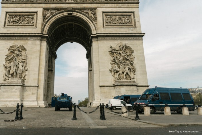 В декабре прошлого года в этот популярный туристический объект вторглись протестующие и устроили там погромы. Теперь арка под надежной защитой. В марте произошли погромы и пожары на Елисейских полях.
